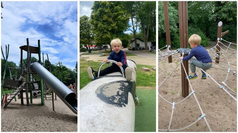 De draken speeltuin. Een grote hit bij ons. Als we vragen naar welke speeltuin ze heen willen is het 8 van de 10 x Fort Drakensteijn. En dat snappen we helemaal. We parkeren de auto gratis aan het rand van het park De kindjes gaan met hun step of fiets racen in het park tot we bij het speel gedeelte komen. De wandeling alleen als is een feestje in dit mooie park. Bijna altijd beginnen we bij Kinderboederij 't Hoefblad wat naast de speeltuin ligt. Pak die dus ook zeker mee! En dan is het tijd voor heel veel spelen. Er zitten een paar favorieten tussen maar het is vooral leuk om te zien dat ze iedere keer weer ergens anders op gefocust zijn.