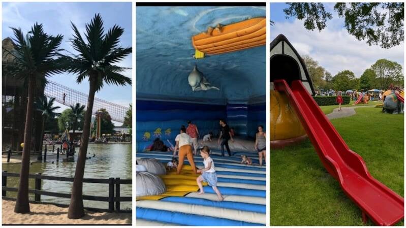 Links bij binnenkomst heb je het pirateneiland, waterfietsen en voor je de kartbaan. Vergeet niet over het bruggetje heen te lopen en van de hoge glijbanen af te gaan.