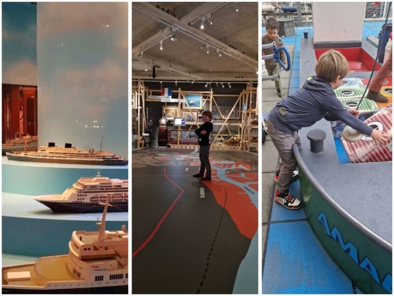 Al bij binnenkomt was het geslaagd. Een grote reddings sloep stond in de grote hal waar de kinderen gewoon in mochten klimmen en doen alsof ze de wereld gingen redden. Daarna ga je door naar de verschillende afdelingen waar je alles over de haven en verschillende schepen te weten komt. Wij kregen steeds de vraag ' is dit een piraten schip? En zo verteldr we bij ieder bootje een eigen spannend verhaal aan.
