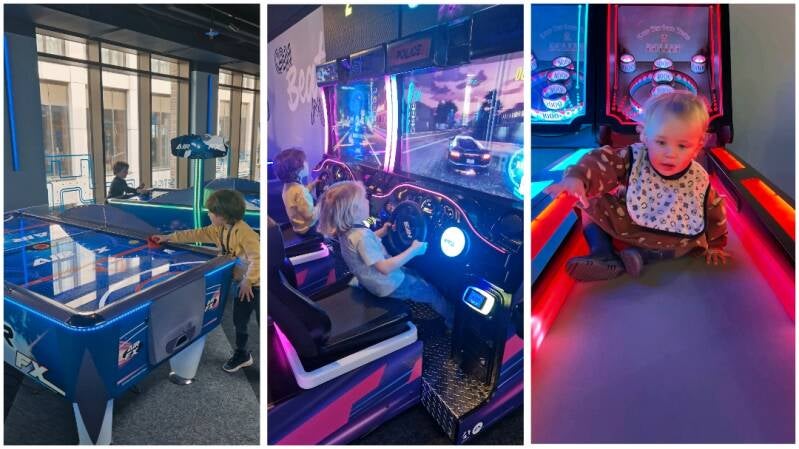 Lang leven onze oudste die 6 werd en lang leven social deal. Oorspronkelijk wilde we zijn feestje thuis vieren maar toen ik deze actie voorbij zag komen kon ik het niet laten om toch de plannen te wijzigen. Voor €12,50 kon je 2 uur lang onbeperkt ( já dat zeg ik goed ONBEPERKT ) spelletjes spelen. Je krijgt dan weliswaar geen kaartjes maar dat mocht de pret zeker niet drukken. Eindelijk een keer dat schietspel een keer af kunnen spelen of 100 X een rematch bij de airhockey. 200 rondjes in de Mario kart auto waarom ook niet. Basketballen en bowlen zweet druppels op me voorhoofd maar wat was het genieten niet alleen de kinderen waren door het dolle heen maar mama kon zo nu en dan ook een balletje gooien